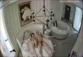 红唇苗条妹子洗完澡和炮友